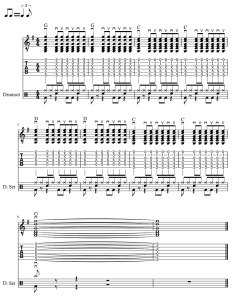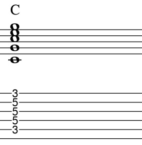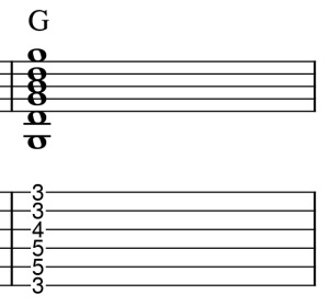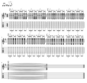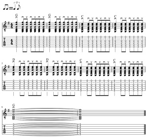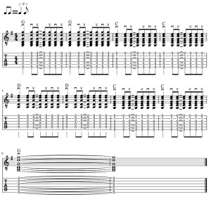 楽譜ではブラッシングがしやすいように、バレーコードのGとCとDを使用しています。