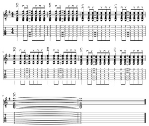 ジャカのところはダウンとアップストロークの組み合わせです。
