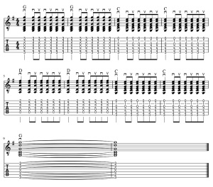 ここでは、8ビートのコードストロークパターンを紹介していきます。