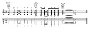 ギターのコードの中には、m7-5(マイナーセブンフラットファイブ)と呼ばれるコードもあります。