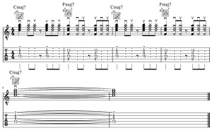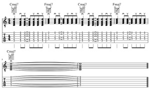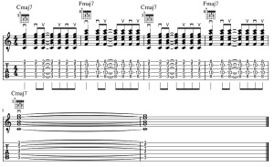 続いて、バレーコードでのCmaj7とFmaj7です。